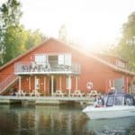 Båthuset är ett populärt utflyktsmål med sitt utsökta läge över hålfjärden i vackra Sankt Anna skärgård. -