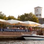 Stegeborgs Hamnkrog ligger precis vid vattnet, intill slottsruinen. Man sitter ute i solen, under soltak precis vid vattnet eller inne i krogen med öppen spis och utsikt över vattnet.